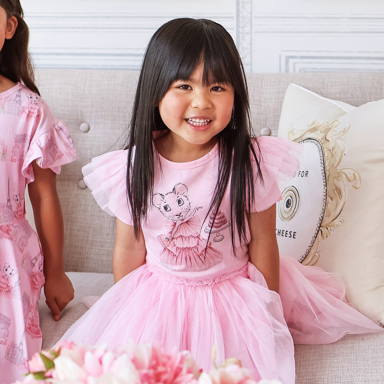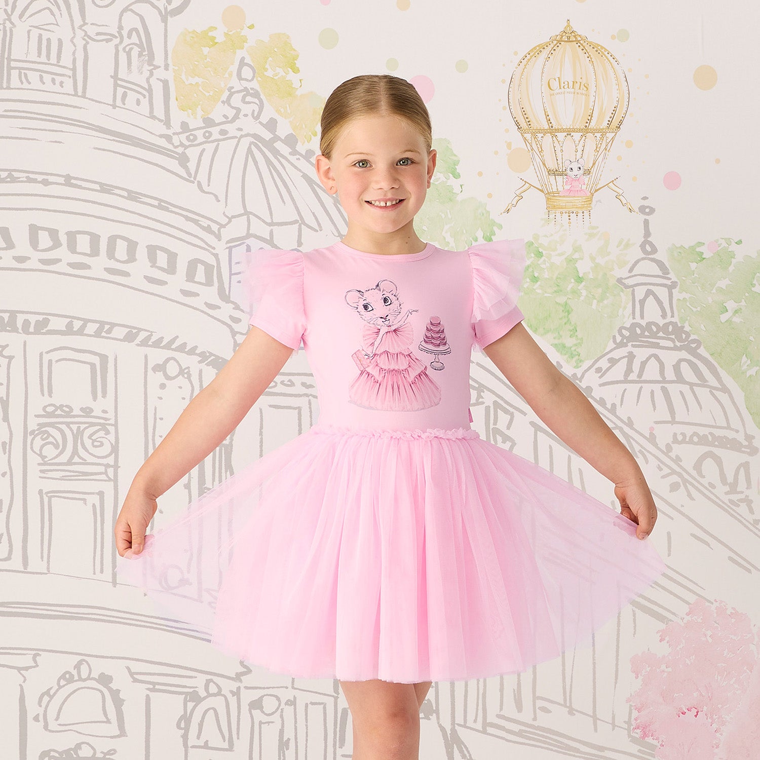 This exquisite Circus Dress is a divine addition to any little girl’s wardrobe, effortlessly blending playful sophistication with Parisian charm. The soft cotton jersey bodice provides ultimate comfort, while the gathered tulle skirt adds subtle volume and movement, creating a refined yet fun silhouette. Short sleeves and an elasticated waist ensure a flawless fit, and the darling placement print. Perfect for elegant birthdays, afternoon high tea, or any occasion that calls for a hint of glamour, this dress is as enchanting as it is wearable.